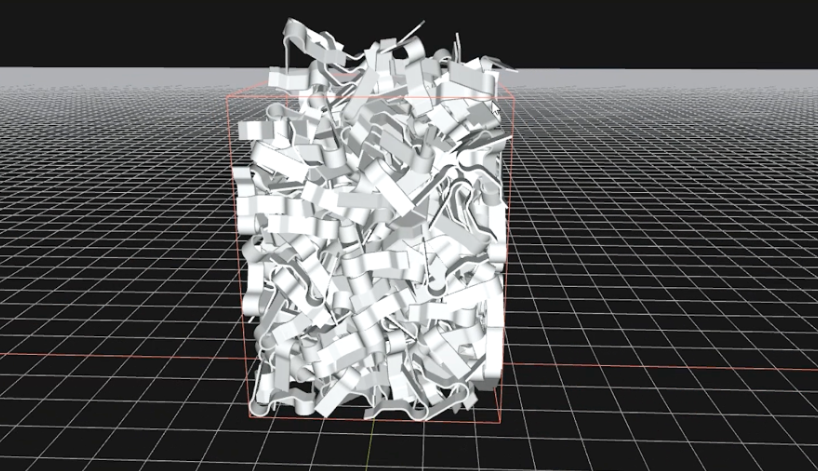 Následně vytvoří video soubor zobrazující 3D pohyb tříděním dílů s různými rozměry v reálném čase.