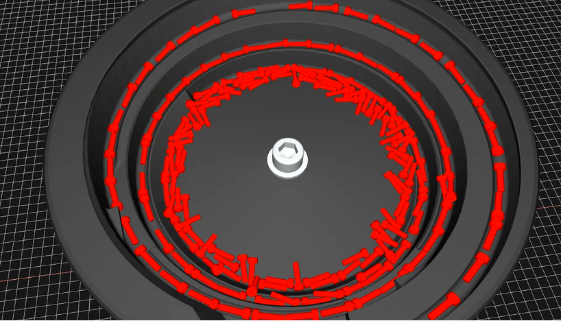 Specialista vytvoří video soubor zobrazující 3D pohyb náhodně sypaných dílů do vhodně zvoleného typu podavače RNA.