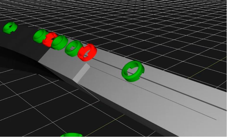 Vytvoří video soubor zobrazující 3D pohyb náhodně orientovaných dílů procházejících třídícím místem v reálném čase.