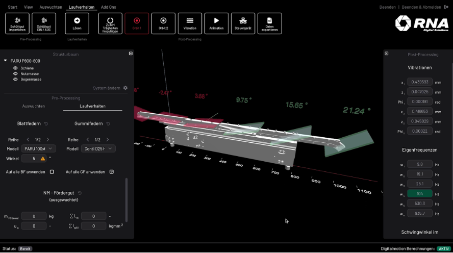 Specialista určí přesné nastavení vibračních pohonů RNA (počet pružin a jejich úhel, typ silentbloků, atd.) pro optimální chod a výkon pohonu s uživatelskou nadstavbou vedení dílů i díly samotnými. Statická i dynamická analýza.